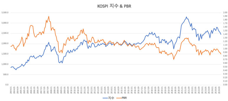 삼성전자는 반도체, 스마트폰, 가전 등 다양한 사업 포트폴리오를 통해 꾸준한 수익을 창출하는 글로벌 우량 기업입니다. 그럼에도 불구하고 PBR이 1에 가깝다는 것은 그만큼 자산 가치에 비해 주가 상승률이 제한적이라는 것을 의미할 수 있습니다. 이는 국내 증시 전반의 낮은 밸류에이션(가치)과 주주환원 정책의 미흡함이 반영된 결과로 볼 수 있습니다.