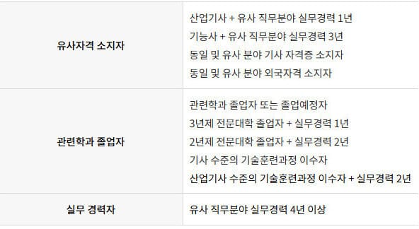 수질환경기사의 응시자격은 아래와 같습니다.