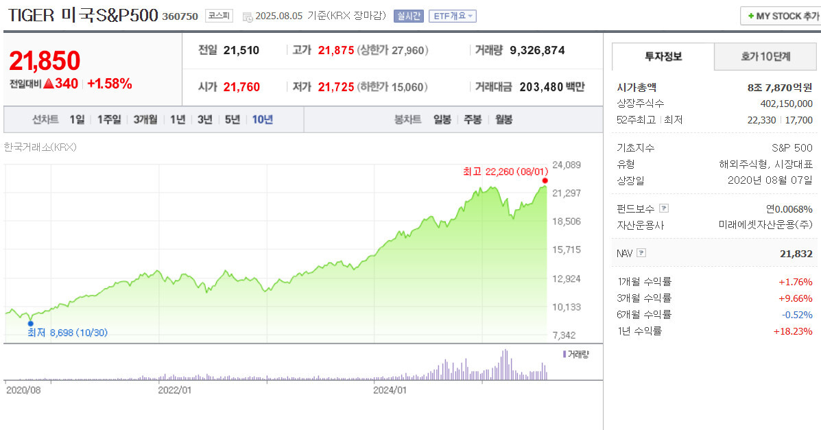TIGER 미국 S&P 500해외지수형미국 S&P500 기업 추종