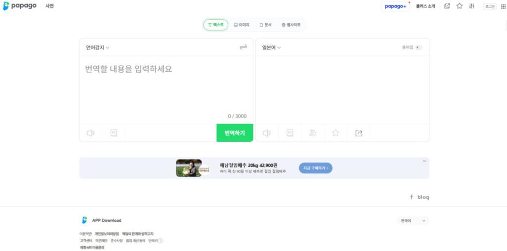 - PC 버전: 별도 설치 없이 papago.naver.com 접속